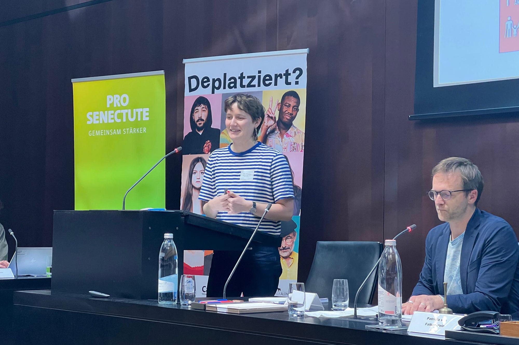 Annika Rohrmoser, a researcher at the Institute for Biomedical Ethics at the University of Basel and a PhD student on the ‘Loneliness prevention’ research project led by Professor Bernice Elger and Professor Rainer Greifeneder, spoke about ways to overcome loneliness, highlighting the different approaches to individual experiences and societal challenges. The groundwork for the presentation in the Federal Palace was laid down by the so-called 'Pairing Scheme' of the NRP 80. As part of this scheme, Annika Rohrmoser exchanged views with National Councilor Christine Bulliard-Marbach (The Centre), who co-chairs the parliamentary groups on ageing, as well as on children and youth. In the following interview, Annika Rohrmoser talks about her experiences and insights from the event in the Parliament Building: